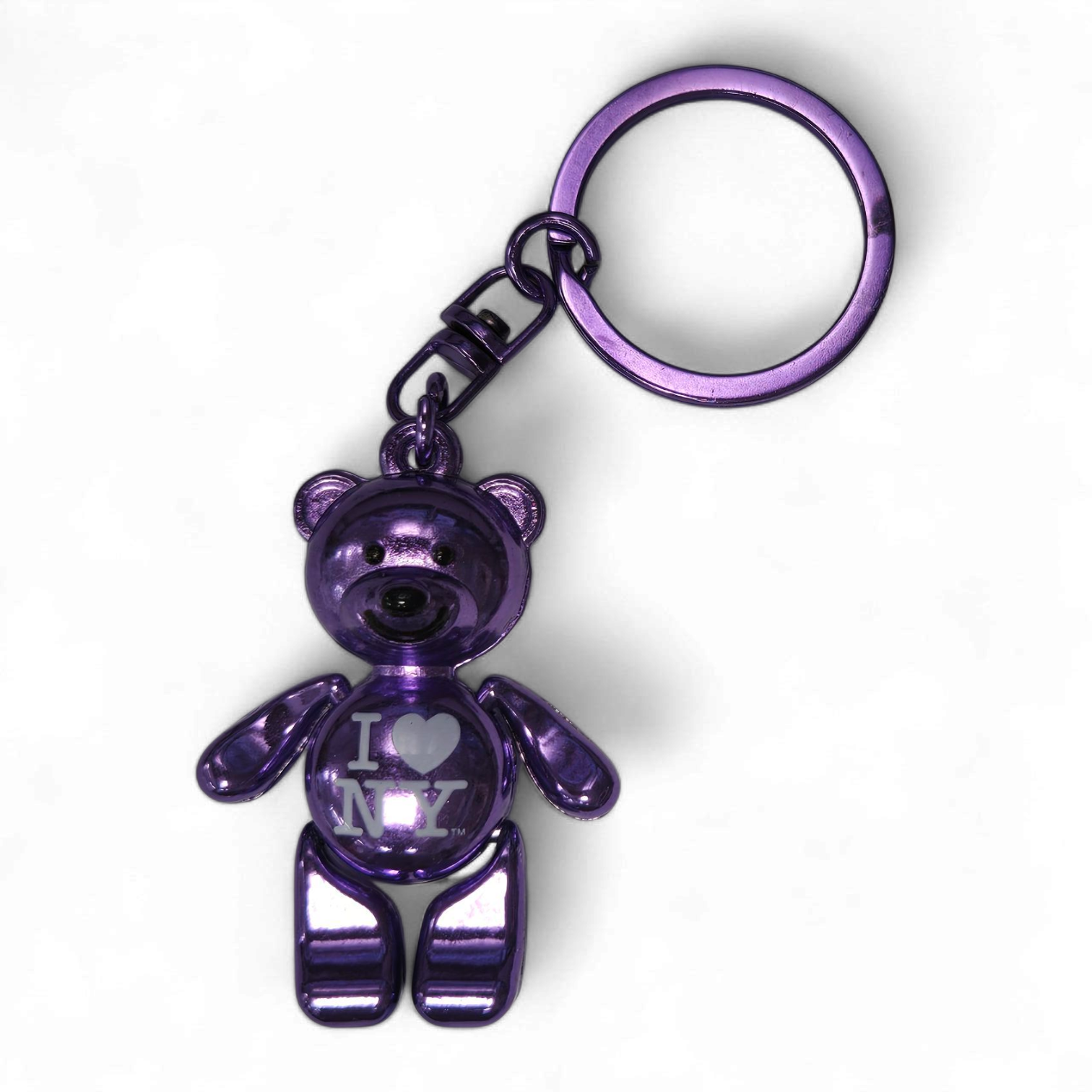 I Love NY Bear Keyring - Metallic Purple.