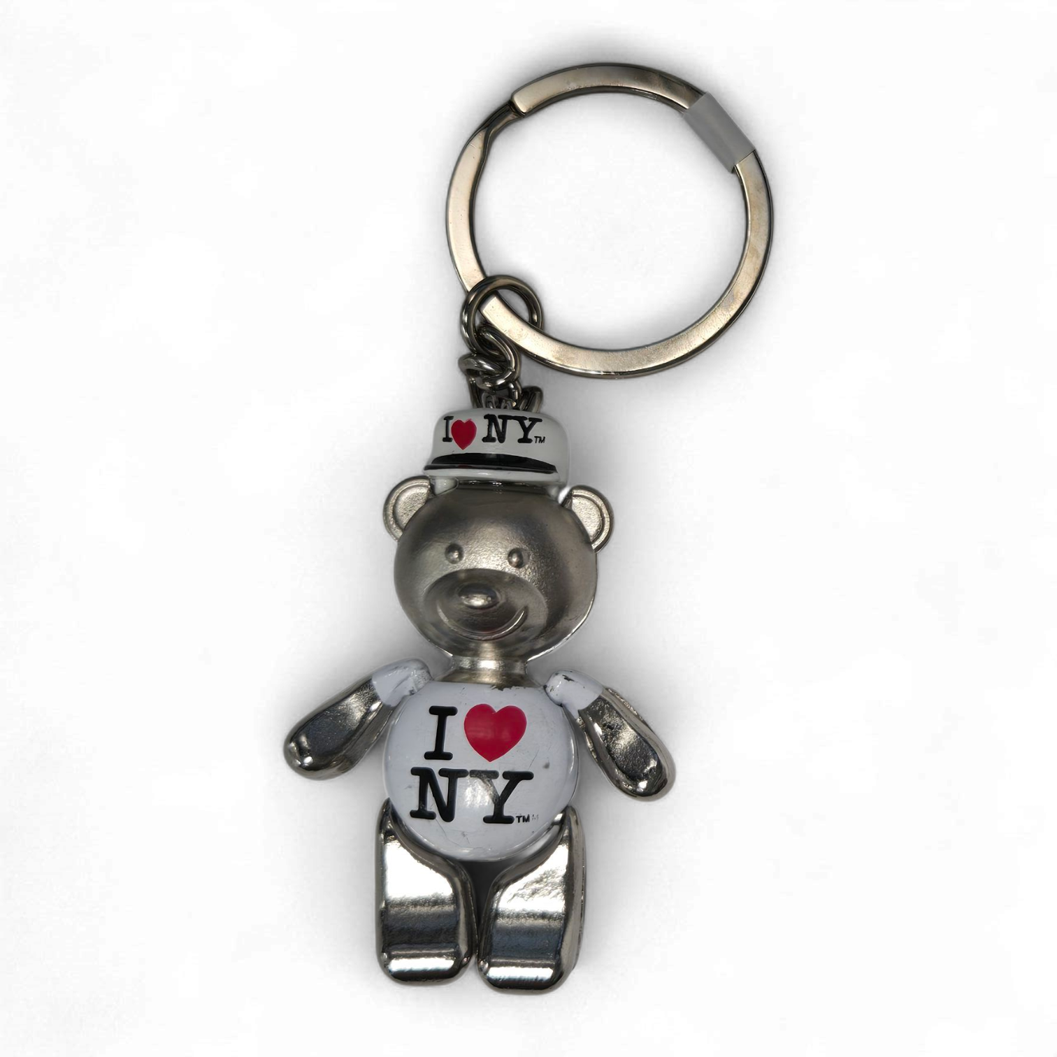 I Love NY Bear Keyring - White Tee and Cap.