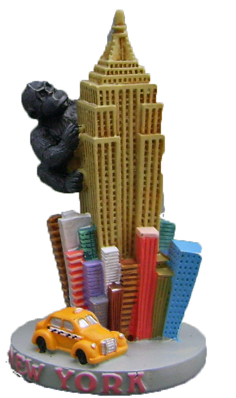 This 4 Inch Paperweight features King Kong climbing up the side of the Empire State Building. This monument displays the enormousity of the Empire State building in comparison to the rest of the buildings around it.