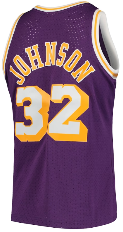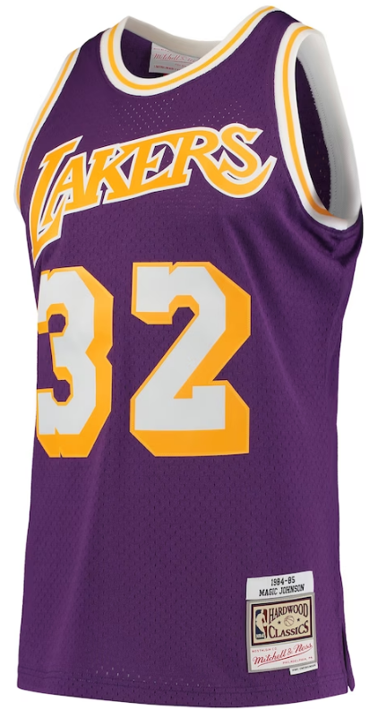 If you're looking for a Magic Johnson Los Angeles Lakers throwback jersey, you have come to the right place. Nothing triggers nostalgia like this Magic Johnson Jersey - Purple Los Angeles Lakers Swingman Adult Hardwood Classic 1984-85 Jersey