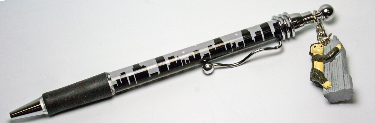 The NYC Grey Skyline Pen with King Kong Charm is one of our most popular gift items. Not only is it a pen, but the hanging charm gives it real character. Pen writes in black ink and is retractable.