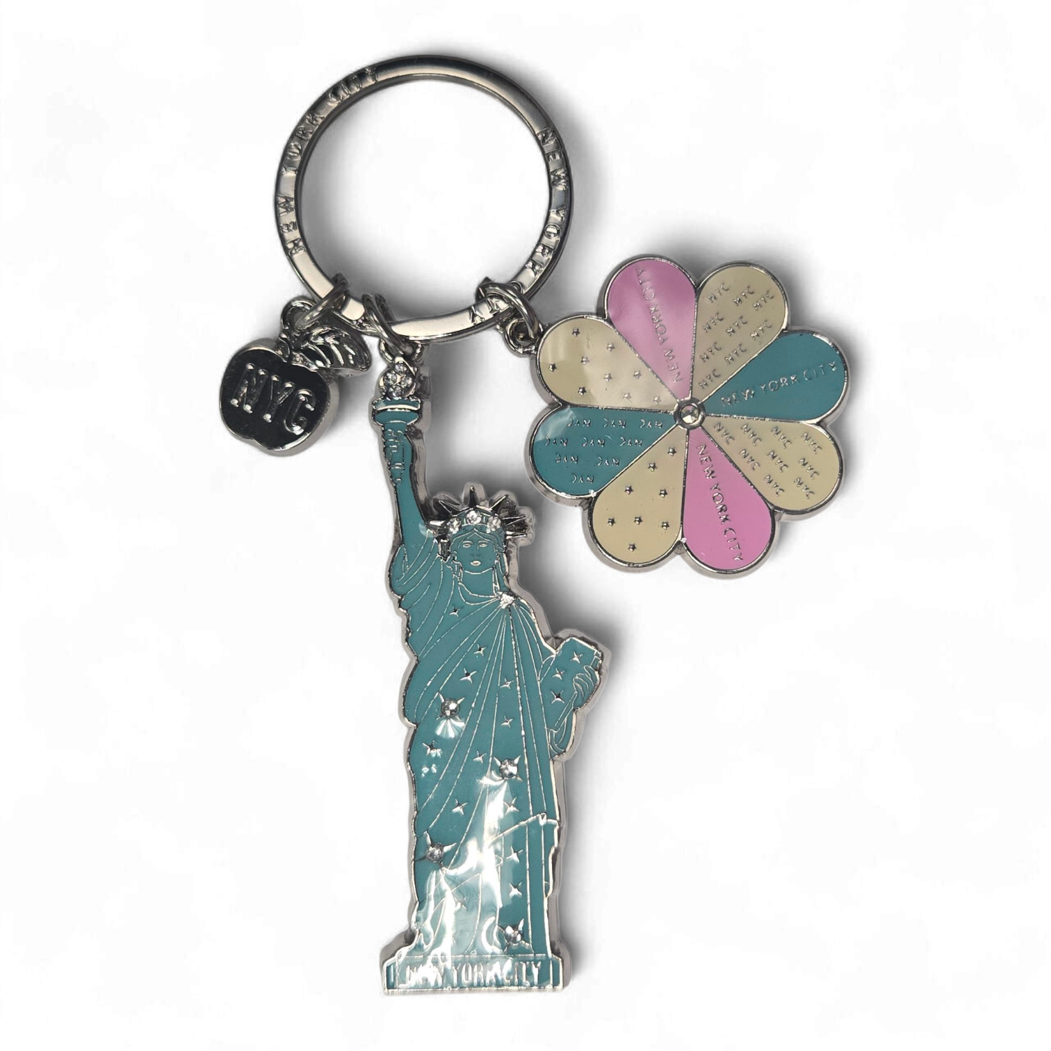 NYC Liberty Flower Enamel Keyring - Tiffany Blue. All new Enamel and Metal Charm Keychains with vibrant enamel coloring and Silver colored polished metal. Built to last and remind you of NYC every time you take out your keys. Available in Multiple colors.