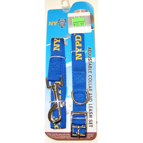 Walk your dog in NYC Style! This Collar and Leash set will let everyone know that you're a serious New Yorker. Collar has belt buckle and holes to adjust to the perfect size. Leash comes with snap on snap off link to attach or detach from the collar. Leash is Approx 4 to 5 feet long.