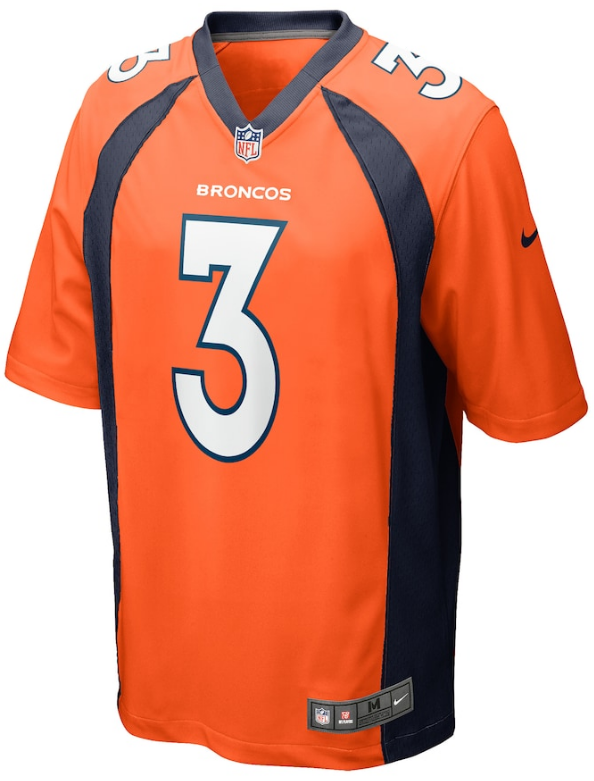 Russell Wilson Youth Jersey - Orange Denver Broncos Kids Nike Game Jersey manufactured by Nike. If you want to walk around with the prowess of Russell Wilson, this jersey is the way to go. Fashioned after the on-filed jersey, the Official Game Jersey is the sweet spot of craftsmanship and price.