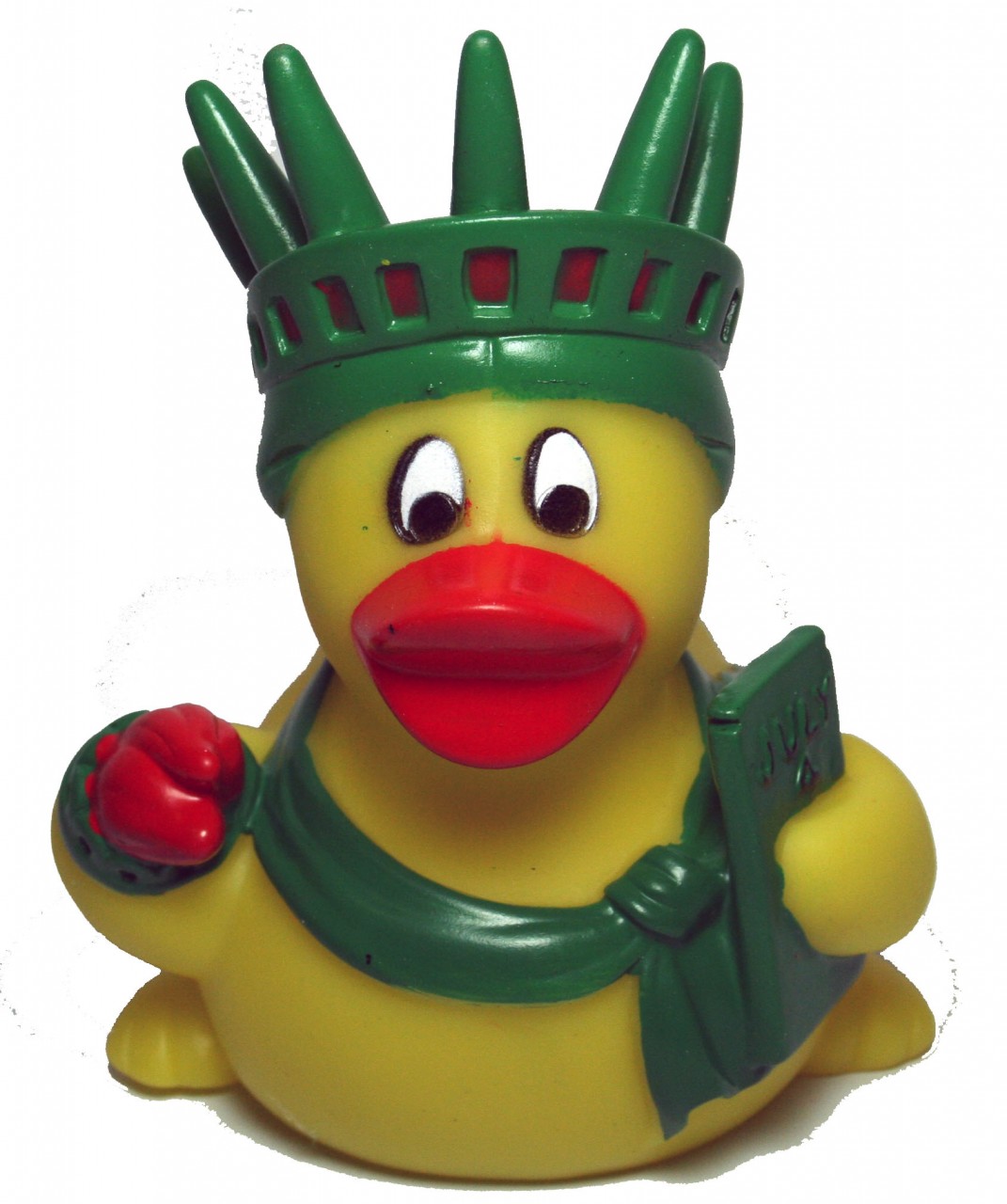 Product Description The Statue of Liberty Rubber Ducky is hands down one of our cutest gifts. For kids of all ages, this bathtub toy will remind your baby of his visit to NYC. Measures 4 inches tall.