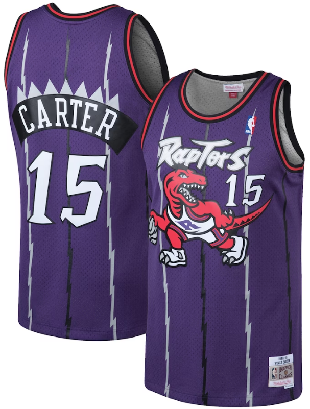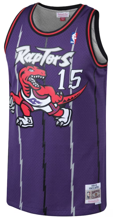 If you're looking for a Vince Carter Toronto Raptors throwback jersey, you have come to the right place. Dress up your aspiring basketball fan in this Vince Carter Youth Jersey - Purple Toronto Raptors Swingman Kids Hardwood Classic 1998-99 Jersey