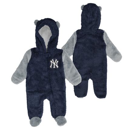 From cool summer nights to crisp fall days, the Yankees Baby Stay Napping Teddy Bear Zip Fleece Bunting offers an extra layer of warmth that helps keep everyone smiling. Fully recycled midweight fleece and bear’s ears make it fun and functional, while fold-over mitts at the cuffs give you one less thing to worry about